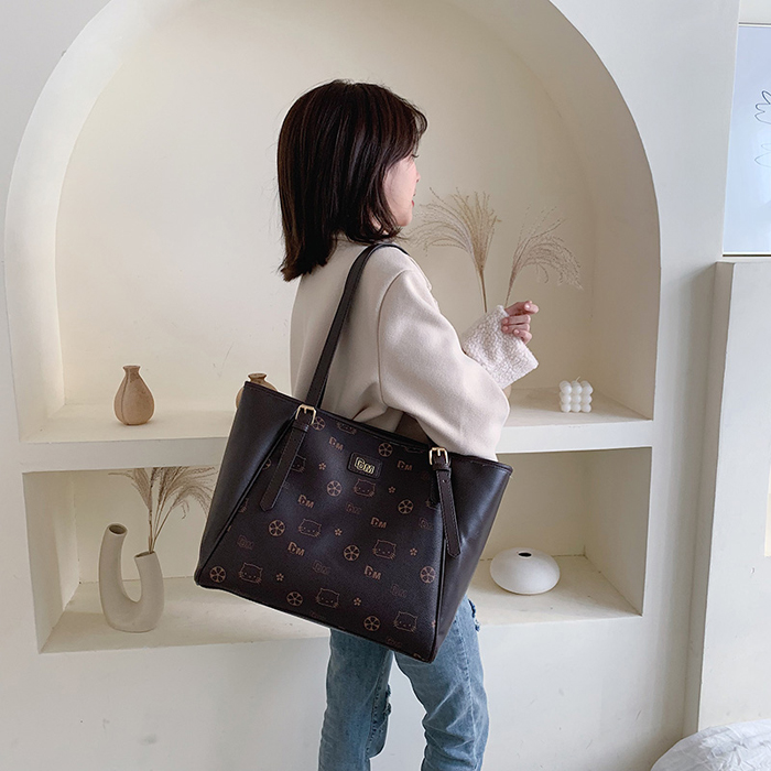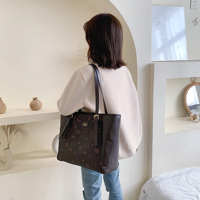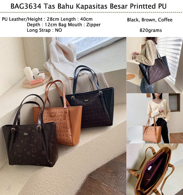 BAG3634 Coffee Tas Bahu Kapasitas Besar Printted PU