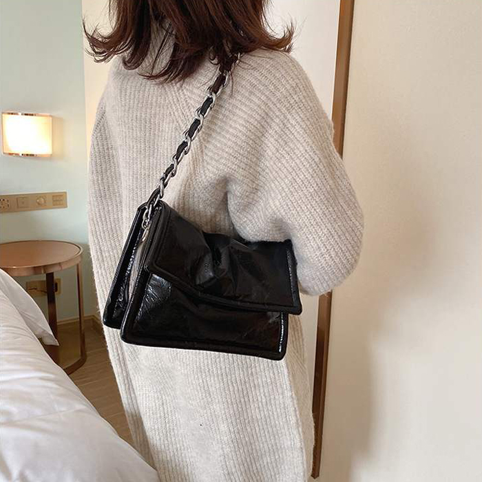 BAG6519 Black Tas Selempang Tekstur Lembut