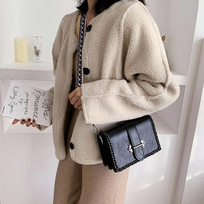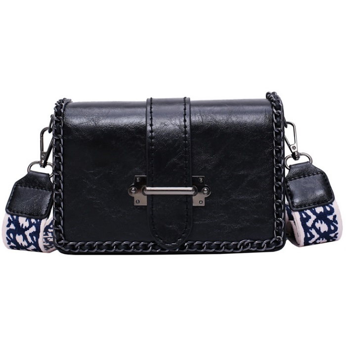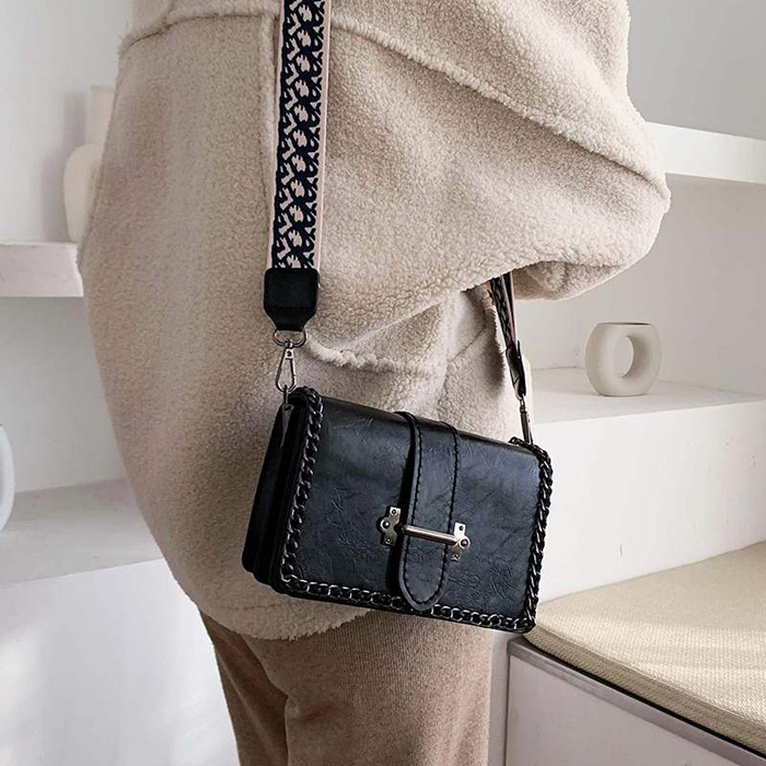 BAG6520 Black Tas Selempang Retro Tali Lebar