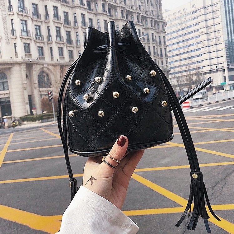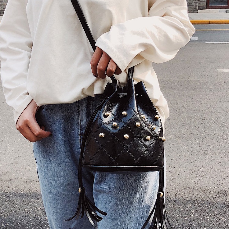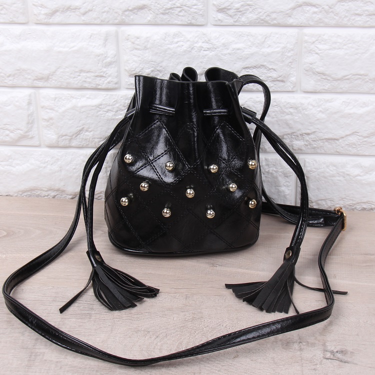 DROP3465 Black Tas Serut Rumbai