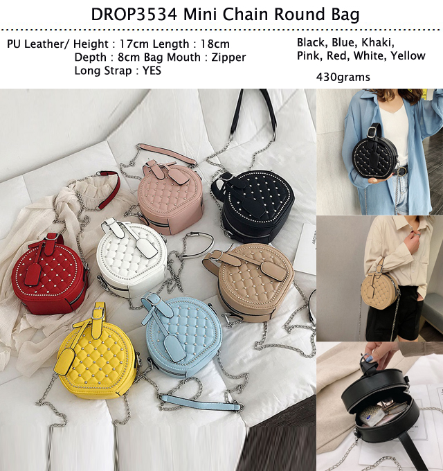 DROP3534 Black Mini Chain Round Bag