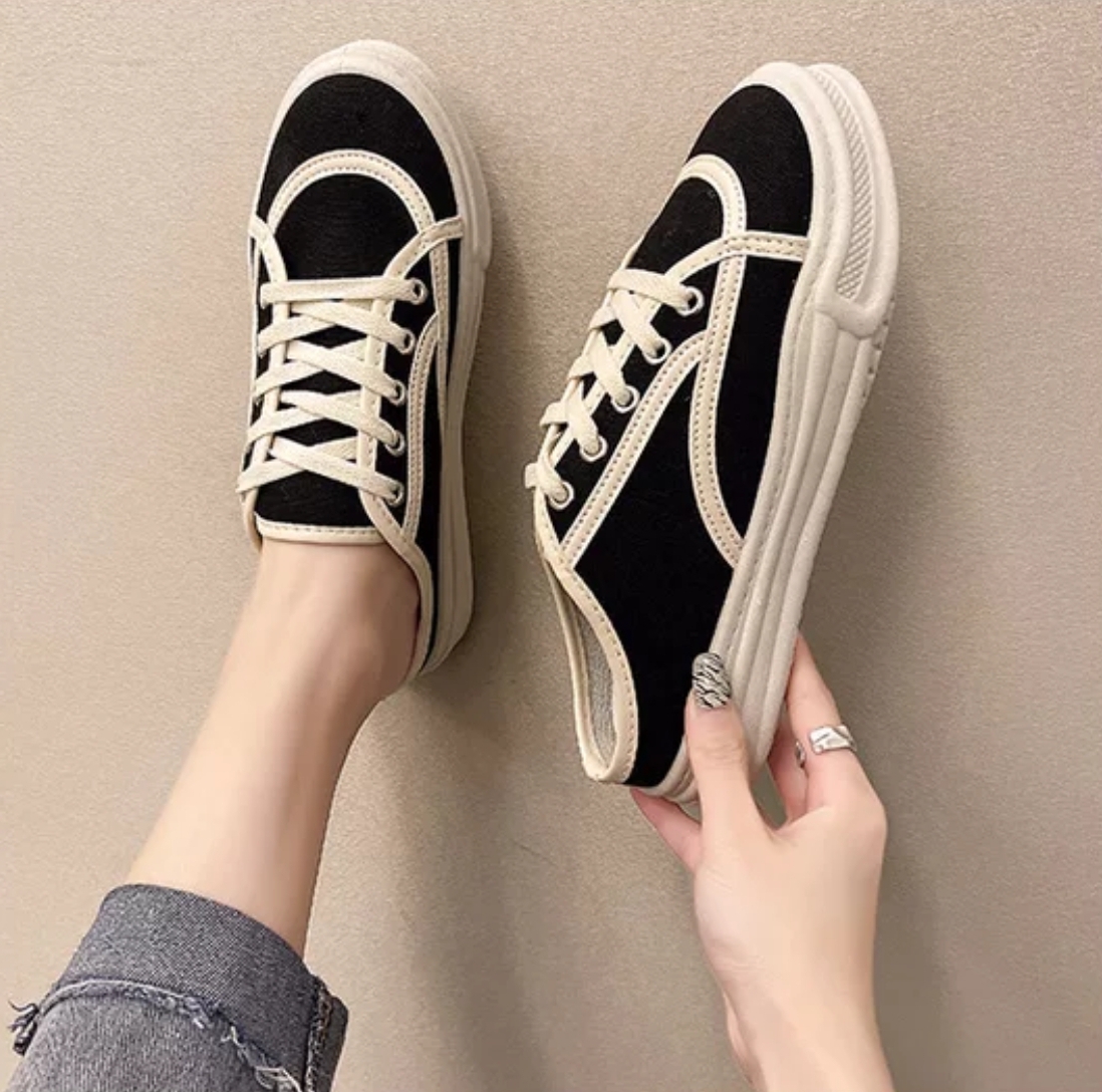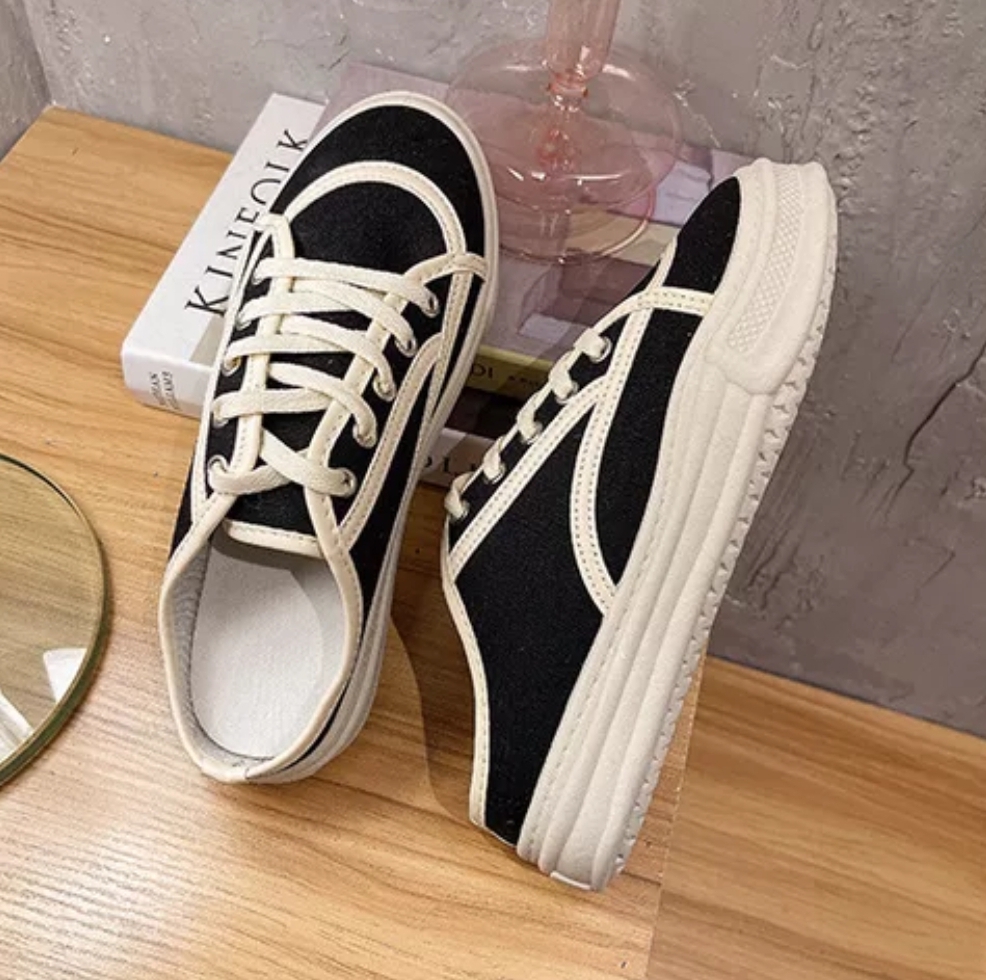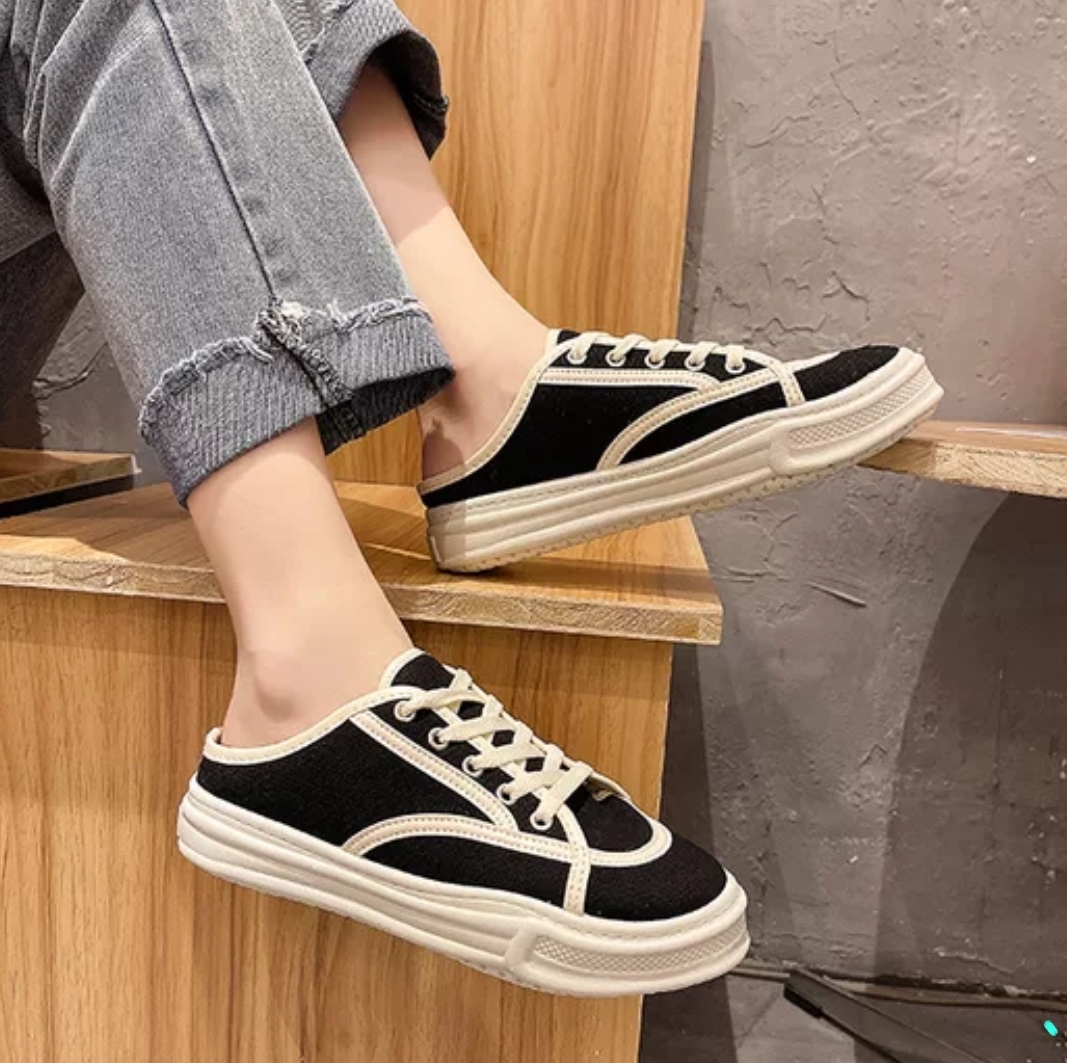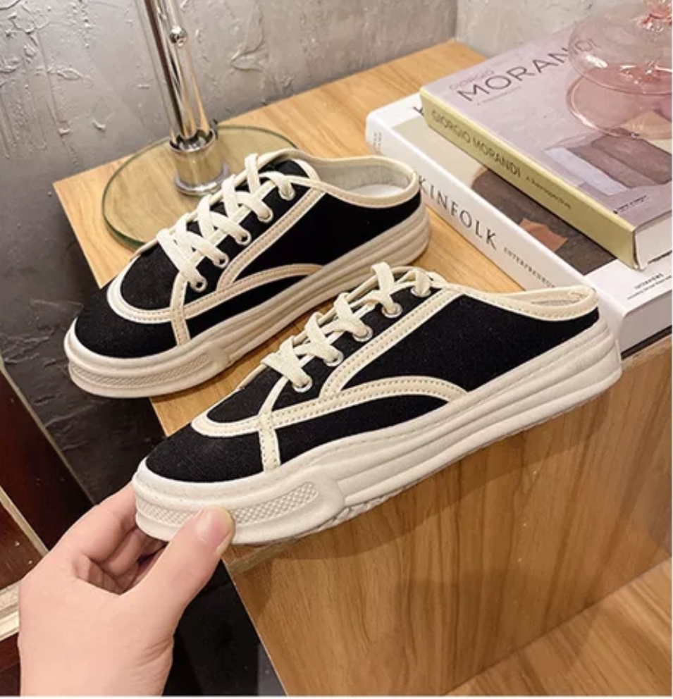 Sandal Wanita Import Sederhana Canvas Dengan Tali Sepatu
