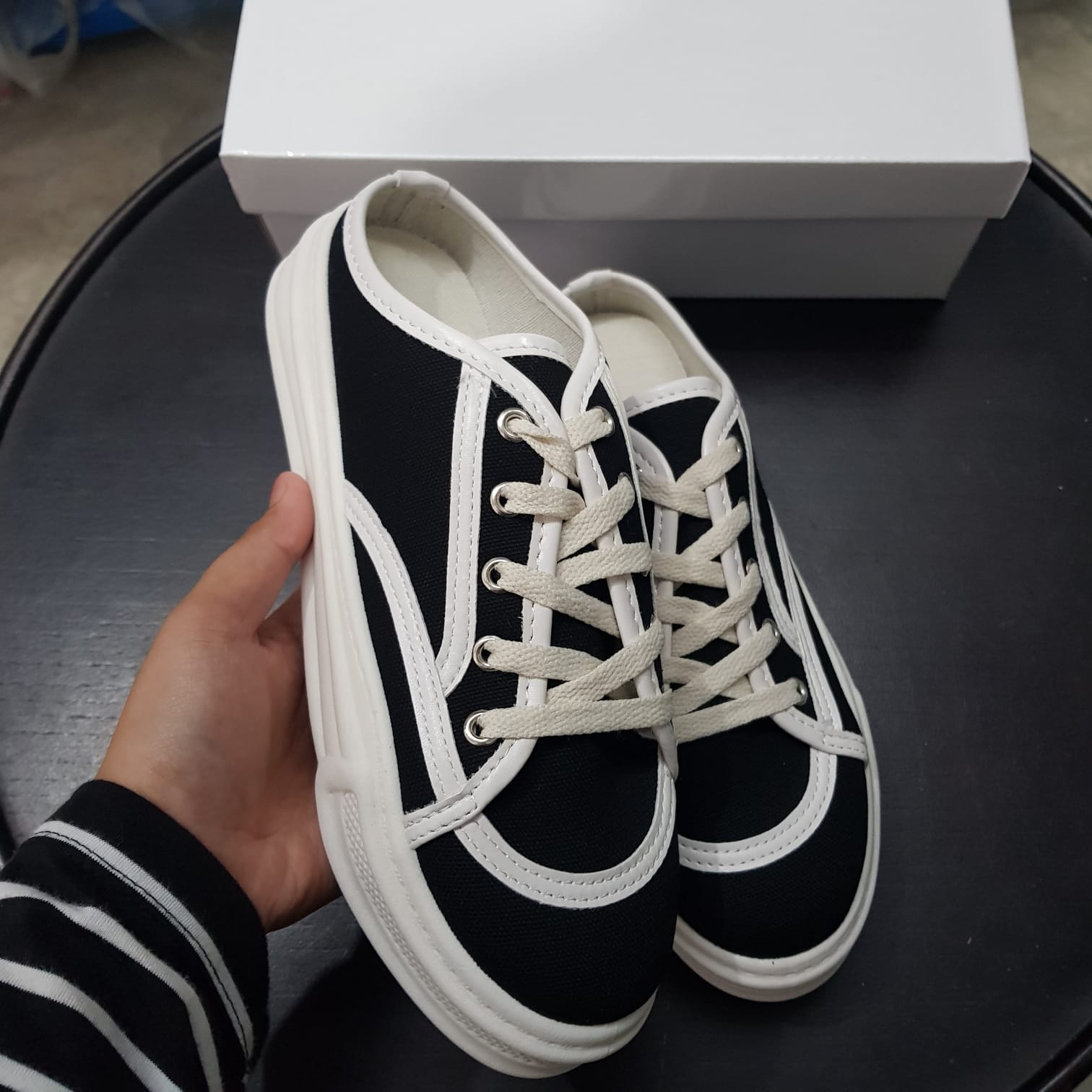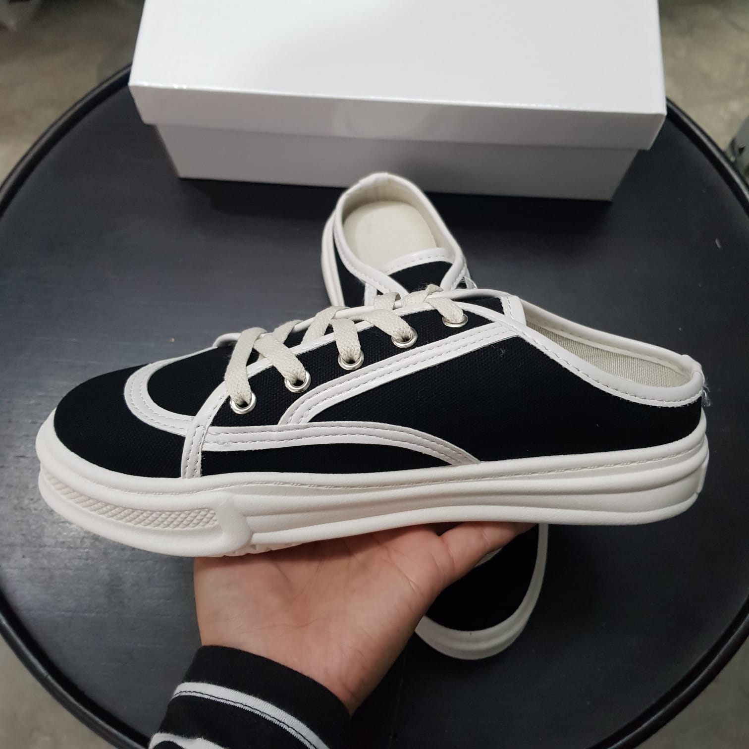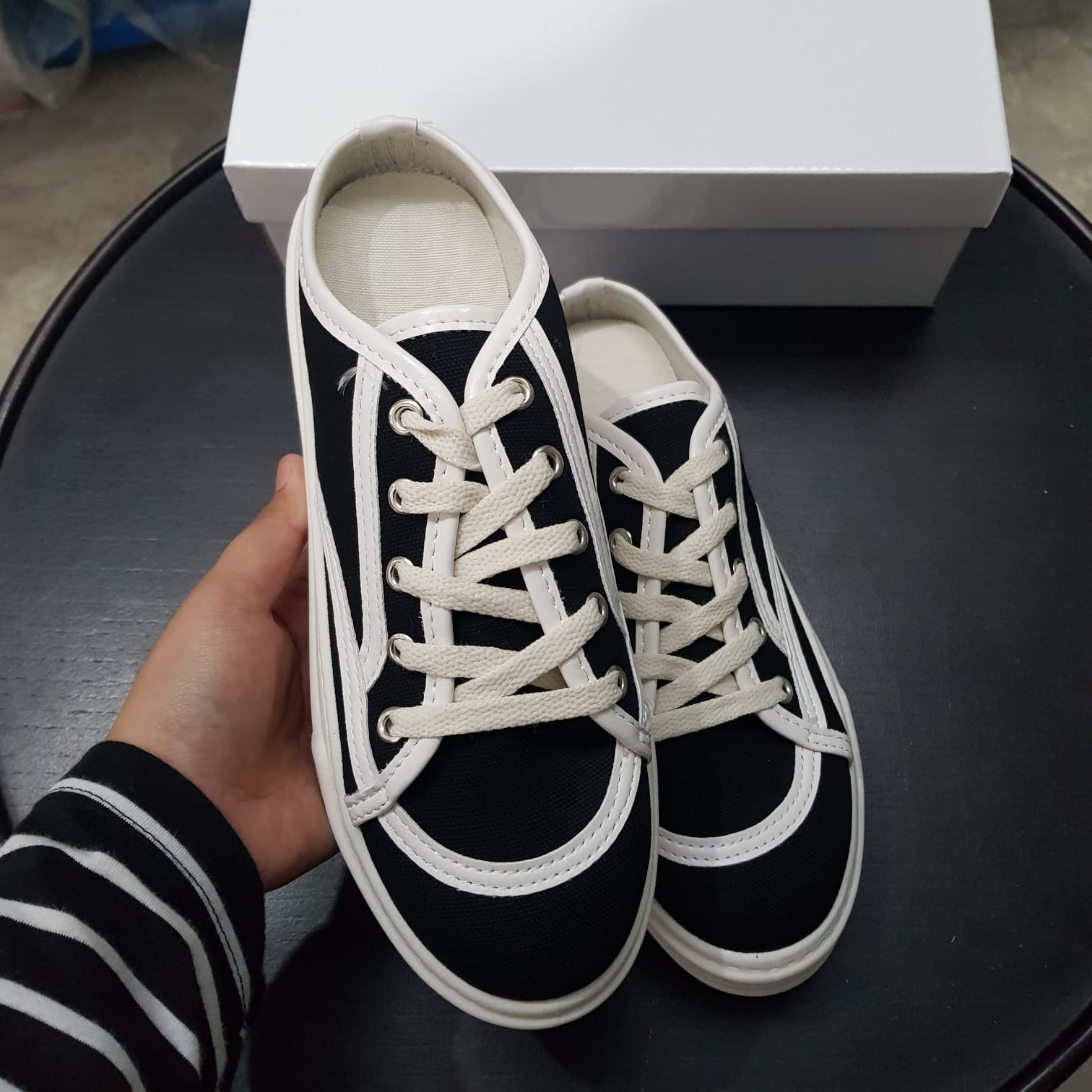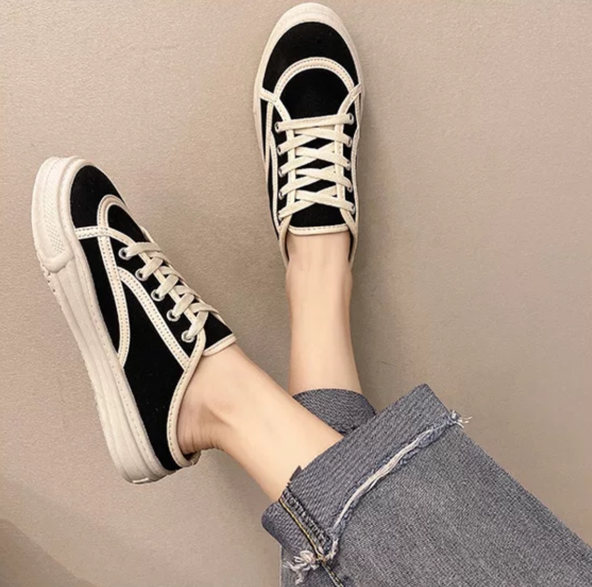 Sandal Wanita Import Sederhana Canvas Dengan Tali Sepatu