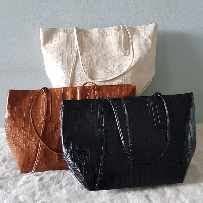 Croco Leather Retro Tote Bag