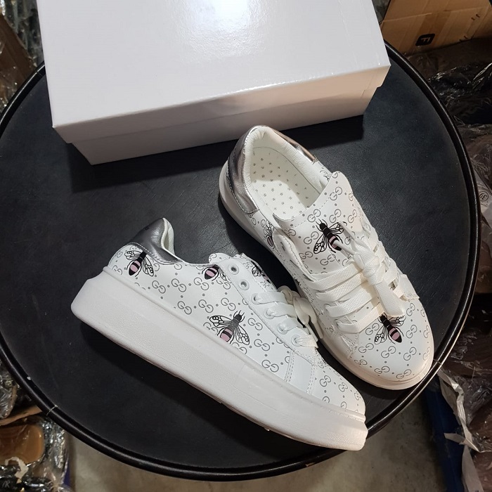 2. SS0387 Silver GG Bee Platform Sneakers