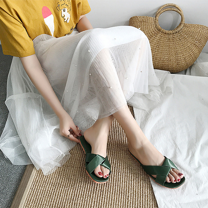 SS0148 Green Sandal Datar Silang