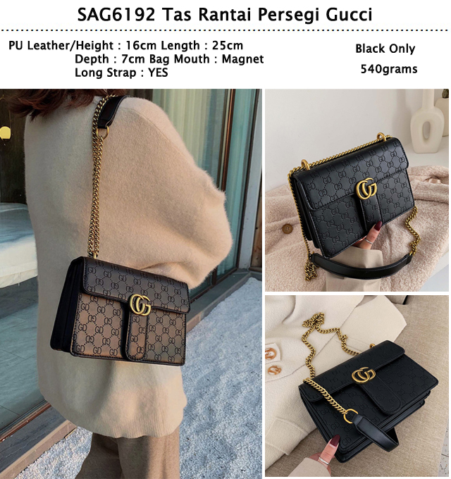 SZ6192 Black Tas Rantai Persegi Gucci