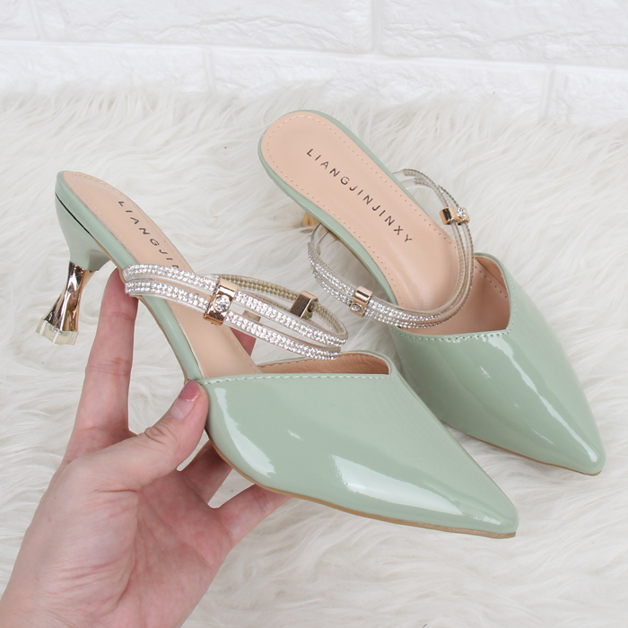 DROP0114 Green Heels Kepala Runcing Elegan