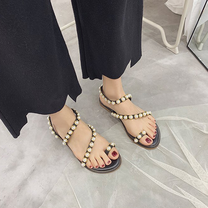 DROP0131 Black Sandal Datar Mutiara