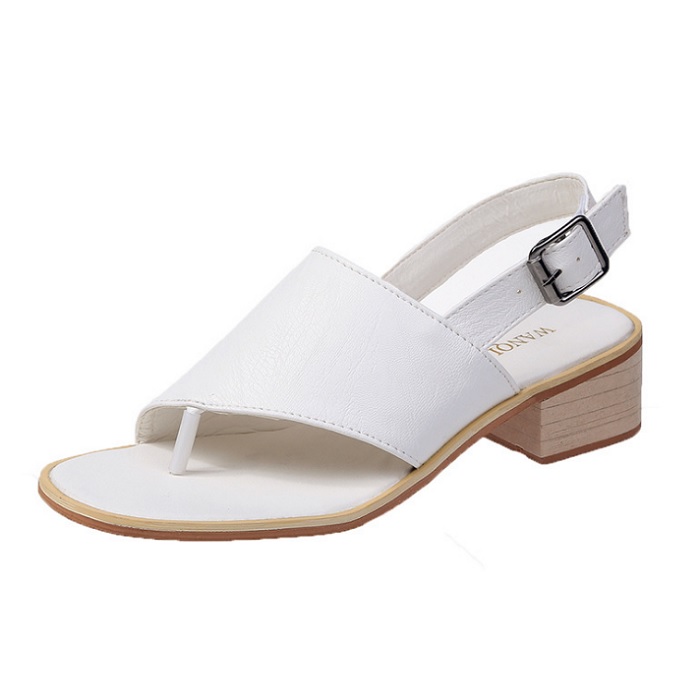 DROP0139 White Sandal Tumit Tebal Kasual Gesper