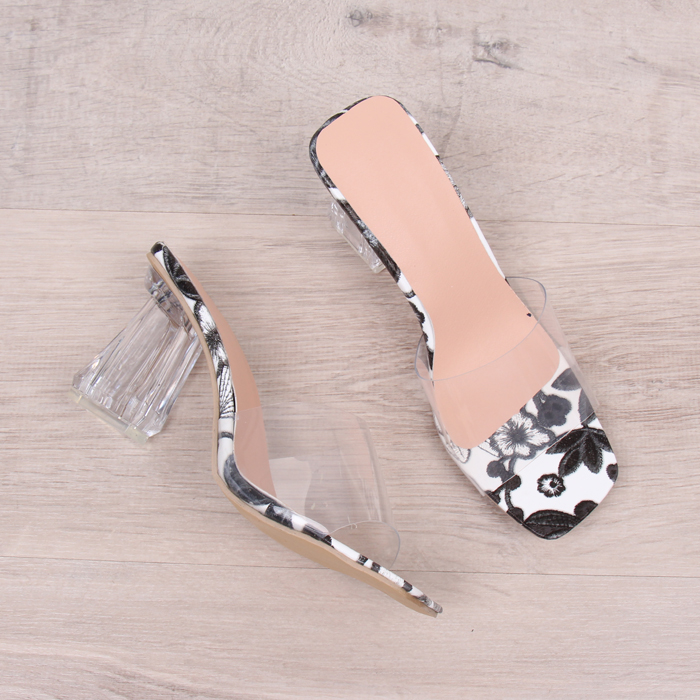 DROP0203 Black Heels Motif Musim Panas Hak Kristal