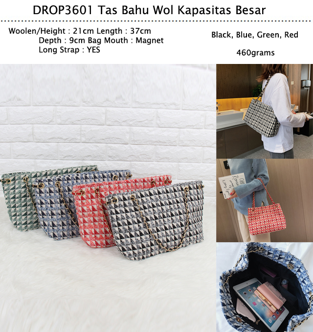DROP3601 Green Tas Bahu Wol Kapasitas Besar