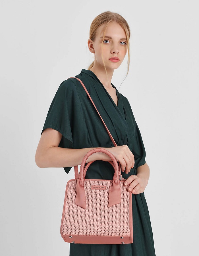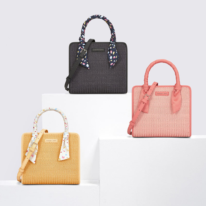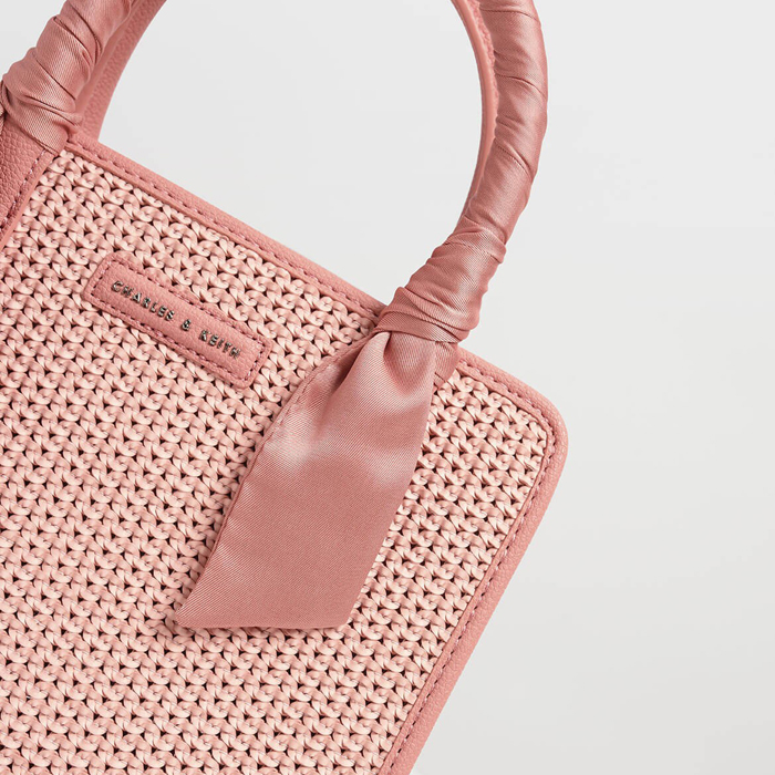 Charles & Keith Printed Satin Scarf Wrapped Woven Bag