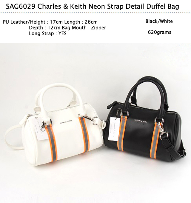SAG6029 Black Charles & Keith Neon Strap Detail Duffel Bag