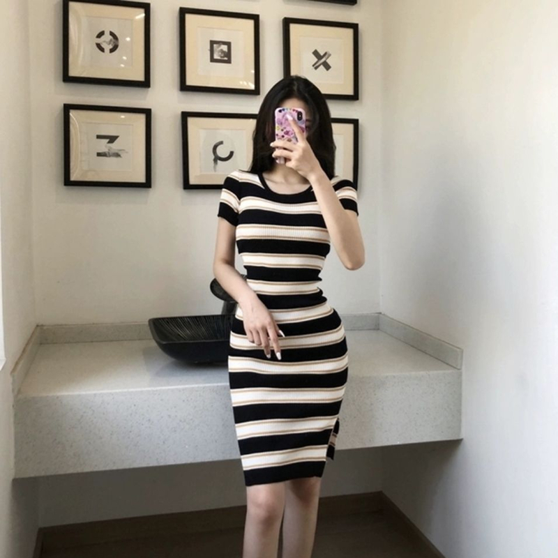 Korean Bodycon Collar Mini Dress Wanita