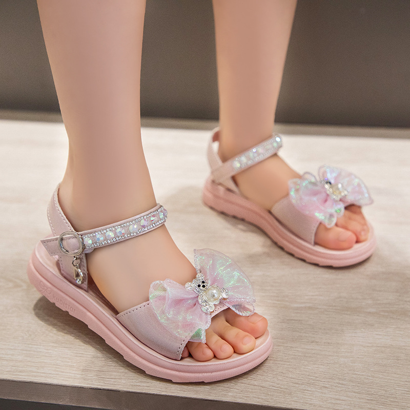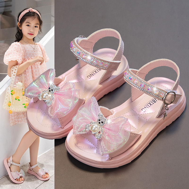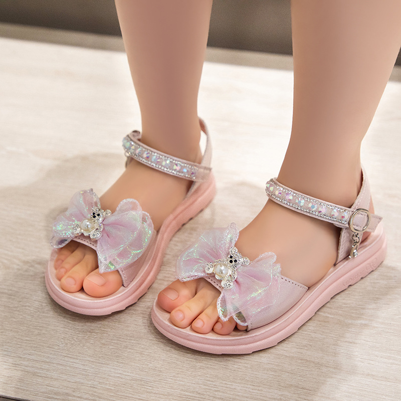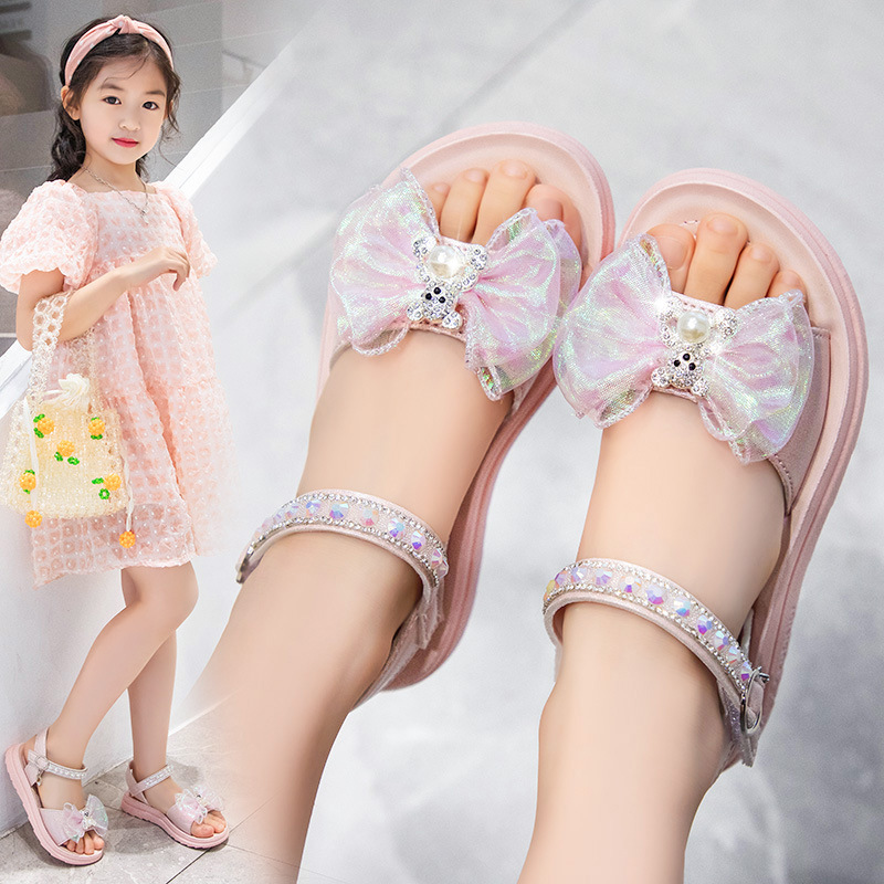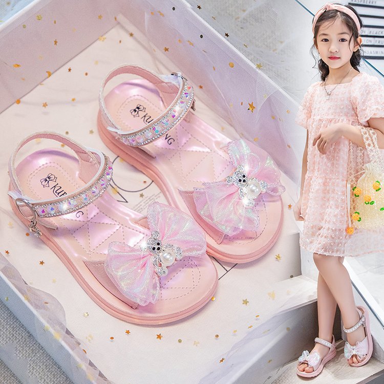 Sendal Tali Anak Perempuan Model Pita Mutiara Bear Import Terbaru