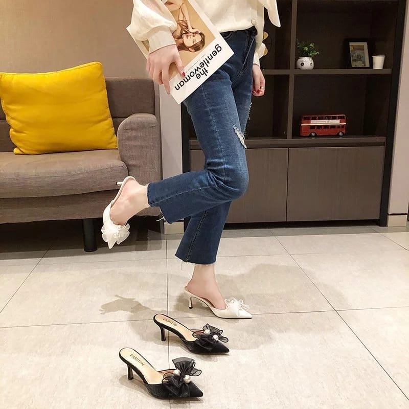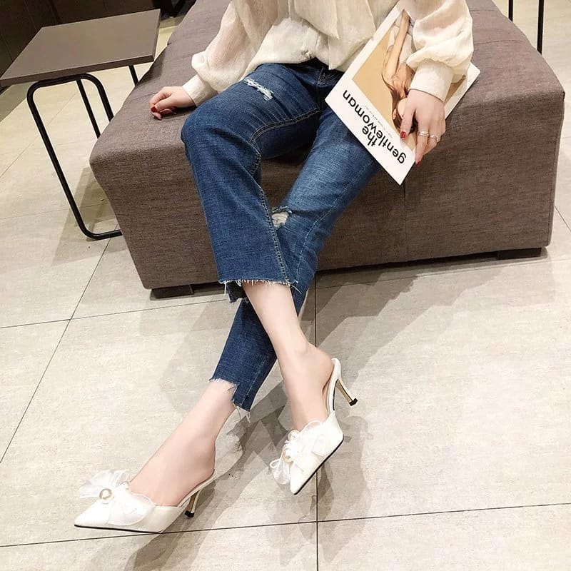 Riboon Mesh Heel Closed Toe Mule