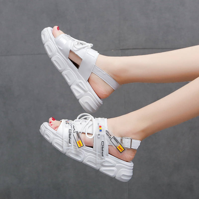 DROP0098 White Sandal Platform Tebal Pantai
