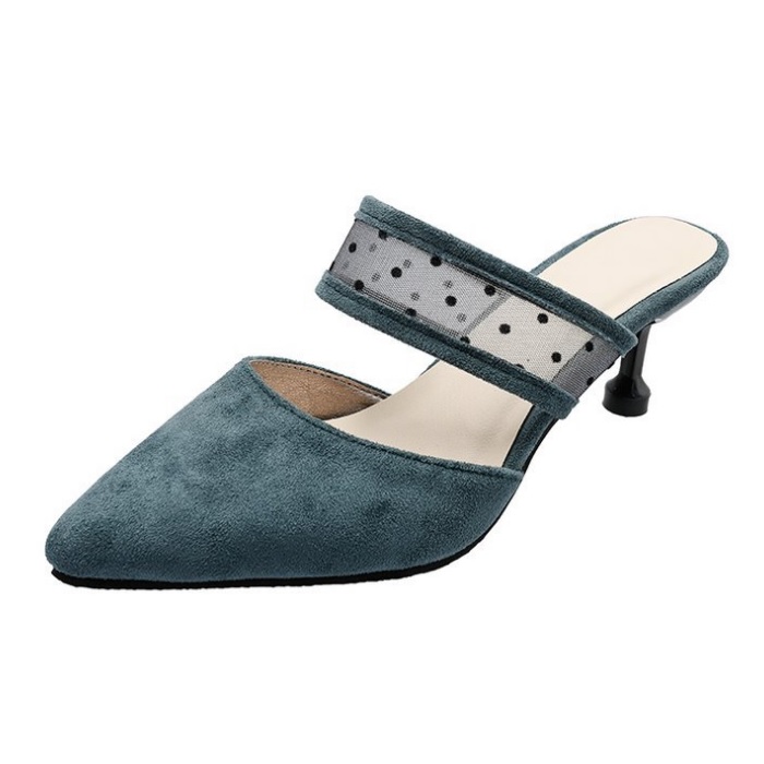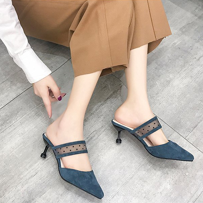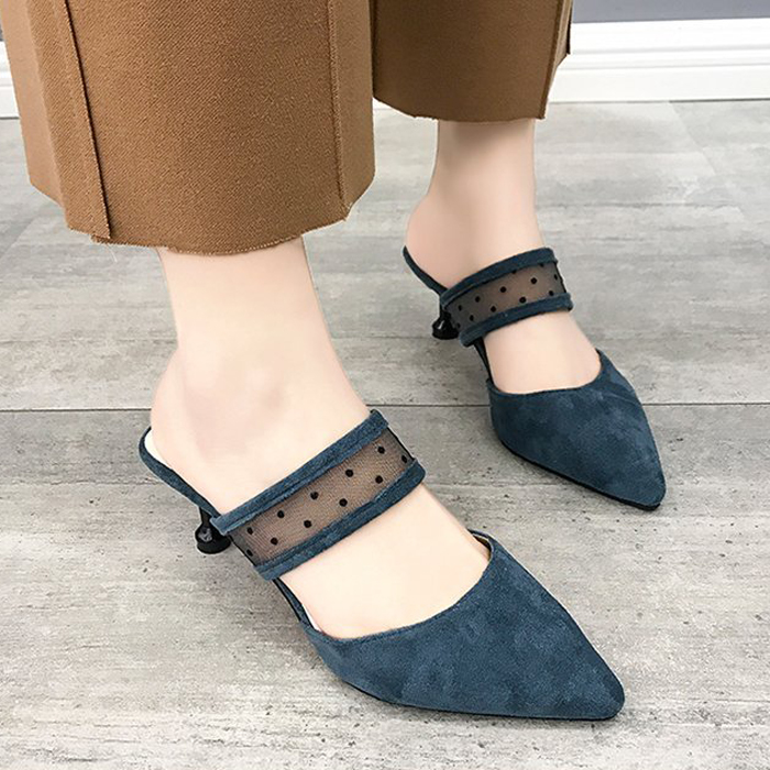 DROP0130 Blue Heels Wanita Tekstur Elegan