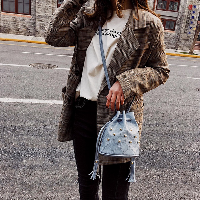 DROP3465 Blue Tas Serut Rumbai