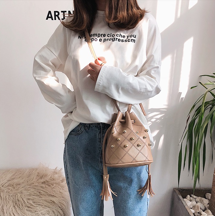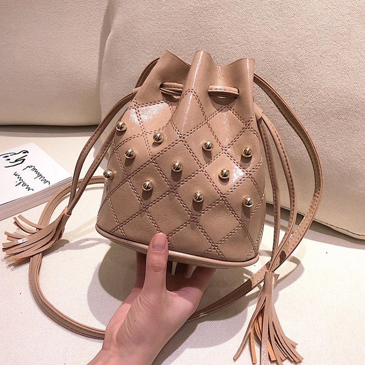DROP3465 Khaki Tas Serut Rumbai