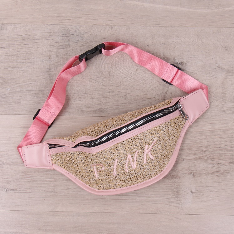 DROP3476 Pink Tas Pinggang Anyaman
