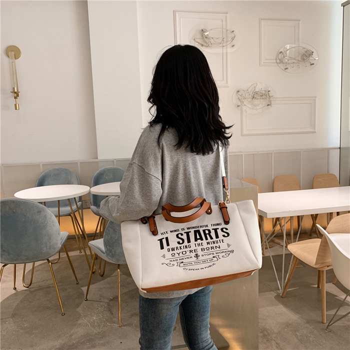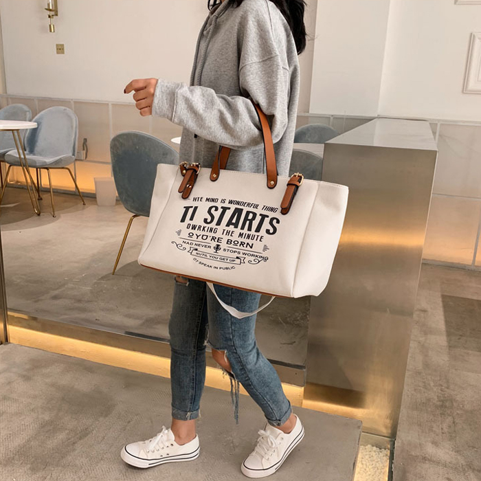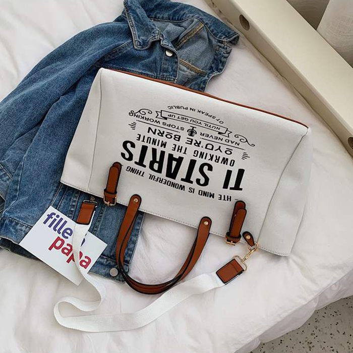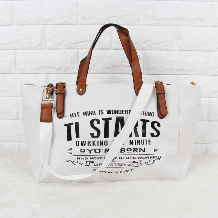 DROP3604 White Tas Tote Kanvas Kapasitas Besar