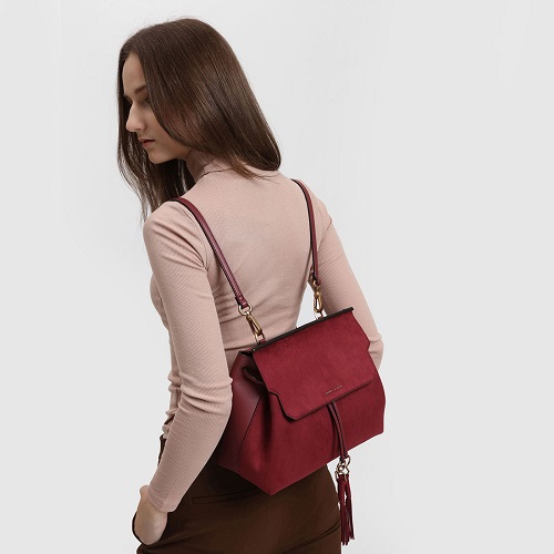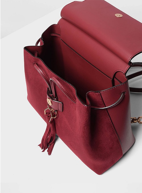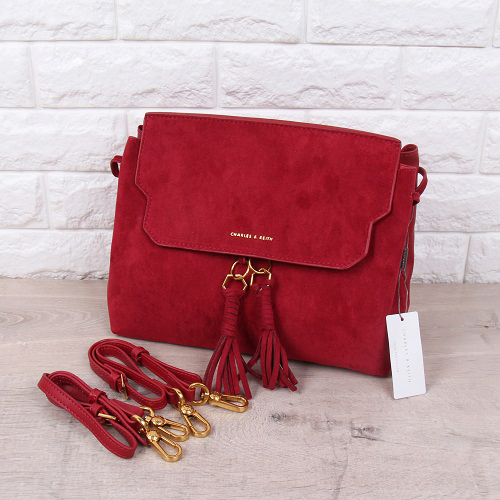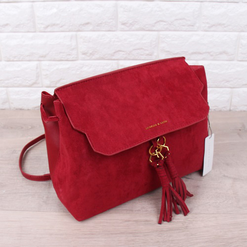 DROP6131 Red Charles & Keith Tassel Detail Front Flap Backpack
