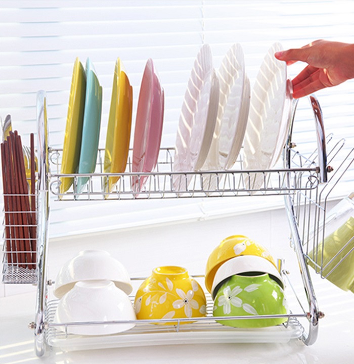 Rak Piring Stainless Minimalis 2 Tingkat Besi 2 Layer Dish Drainer