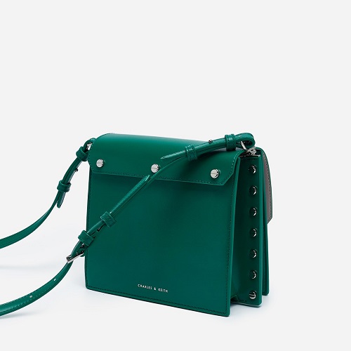 SAG6014 Green Charles & Keith Detachable Two Tone Flip Top Crossbody Bag