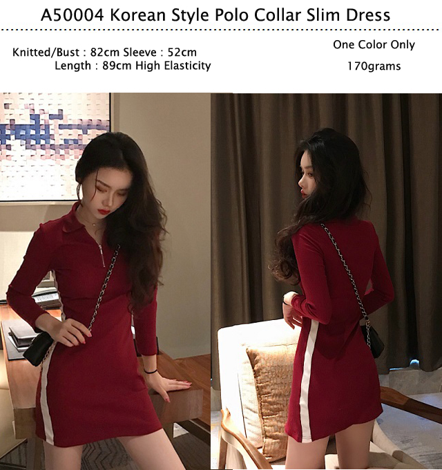 A50004 Korean Style Polo Collar Slim Dress