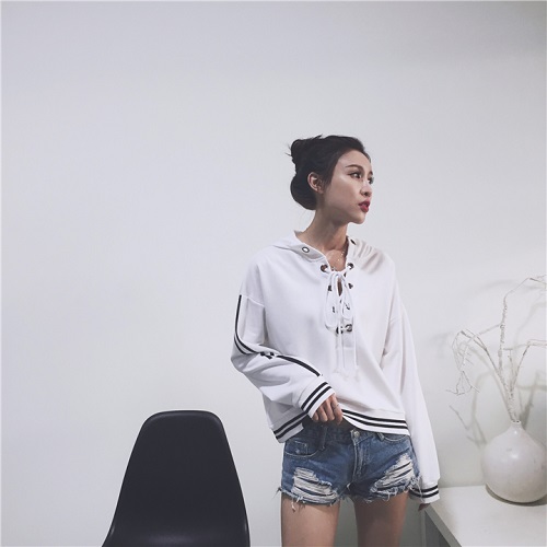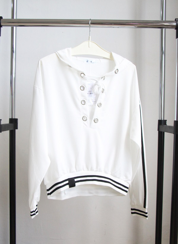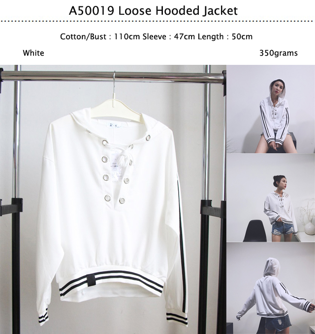 A50019 White Loose Hooded Jacket