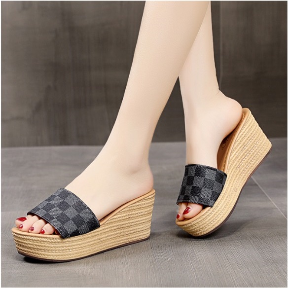 Tartan Plaid Wedges Thick Heels