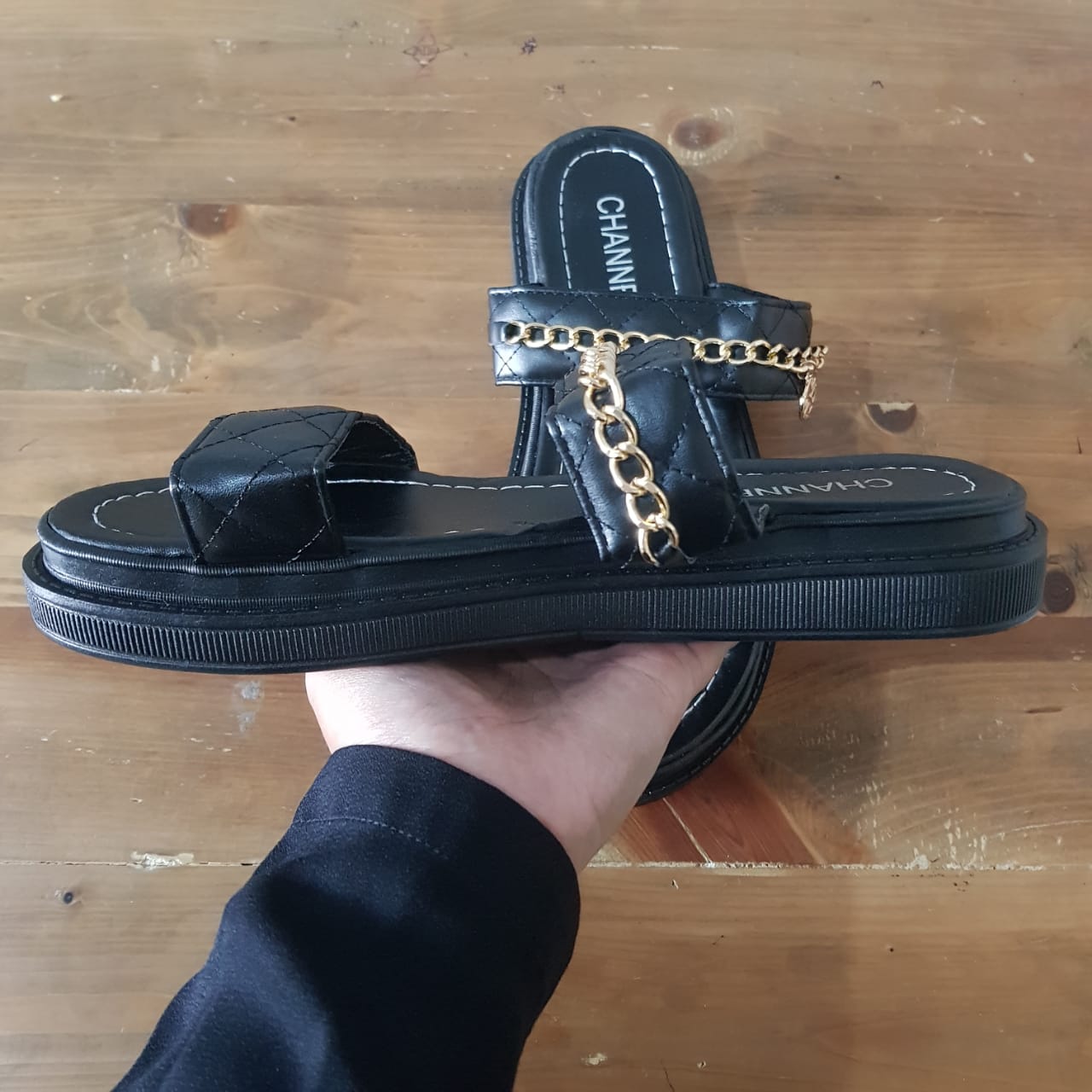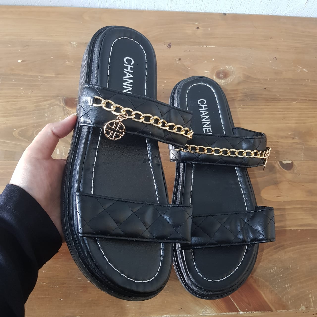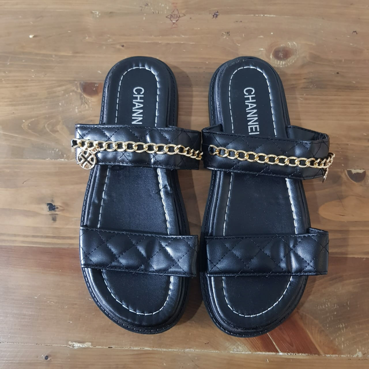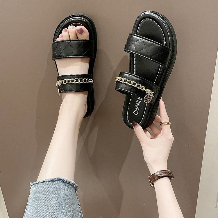 Flower Double Strap Chain Flip Flops