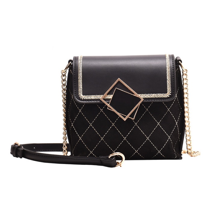 BAG3652 Black Tas Selempang Tekstur Kasar Simetris