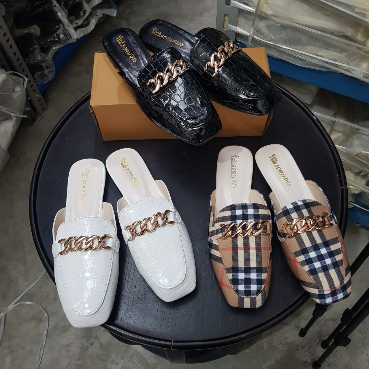 Retro Chain Croco Leather Slip On