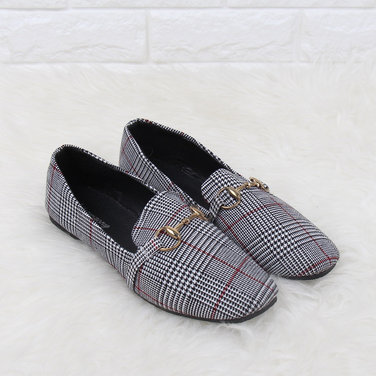 DROP0009 Gray Sepatu Flat Kotak-Kotak