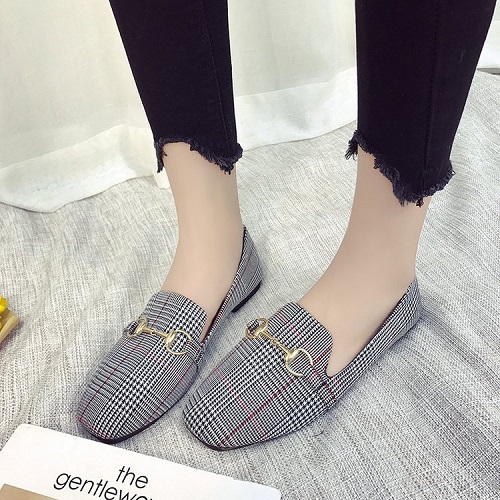 DROP0009 Plaid Versatile Flat Shoes
