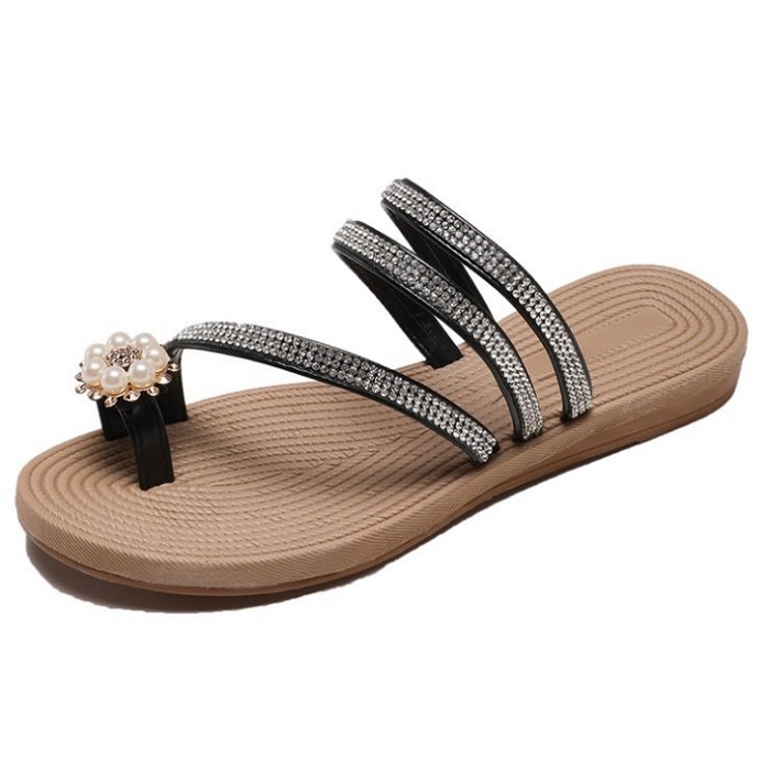 DROP0126 Black Sandal Platform Datar Pantai Gaya Berlian