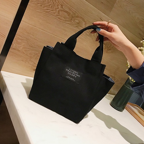 DROP3355 Black Simple Canvas Bag