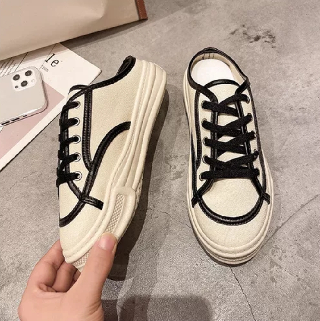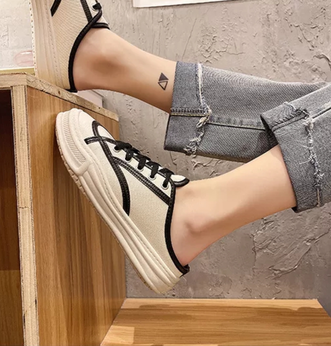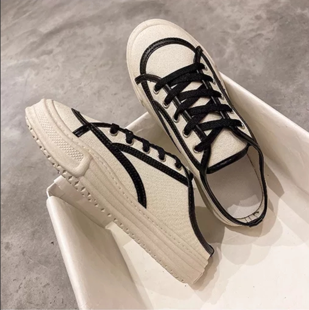 Sandal Wanita Import Sederhana Canvas Dengan Tali Sepatu