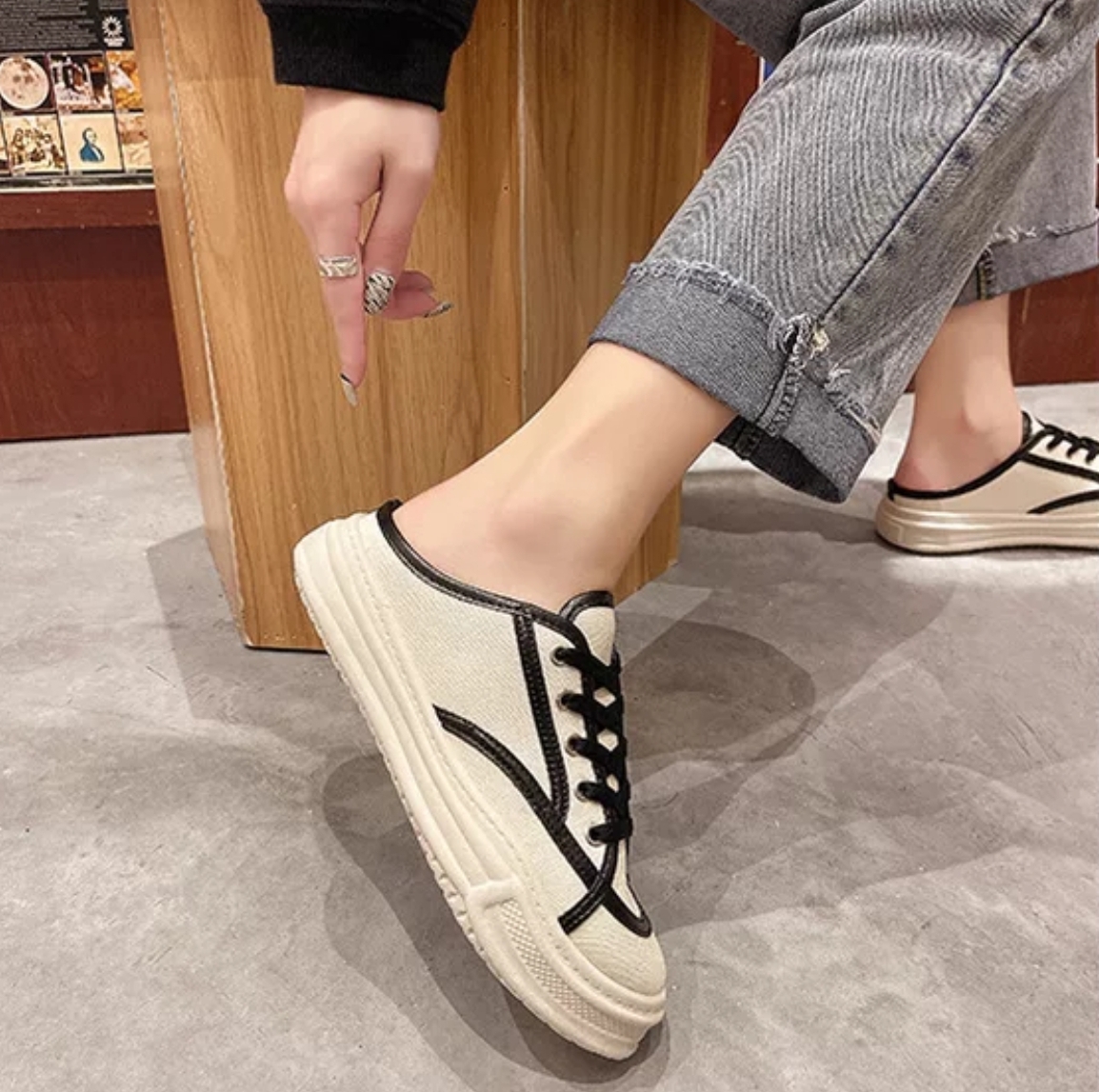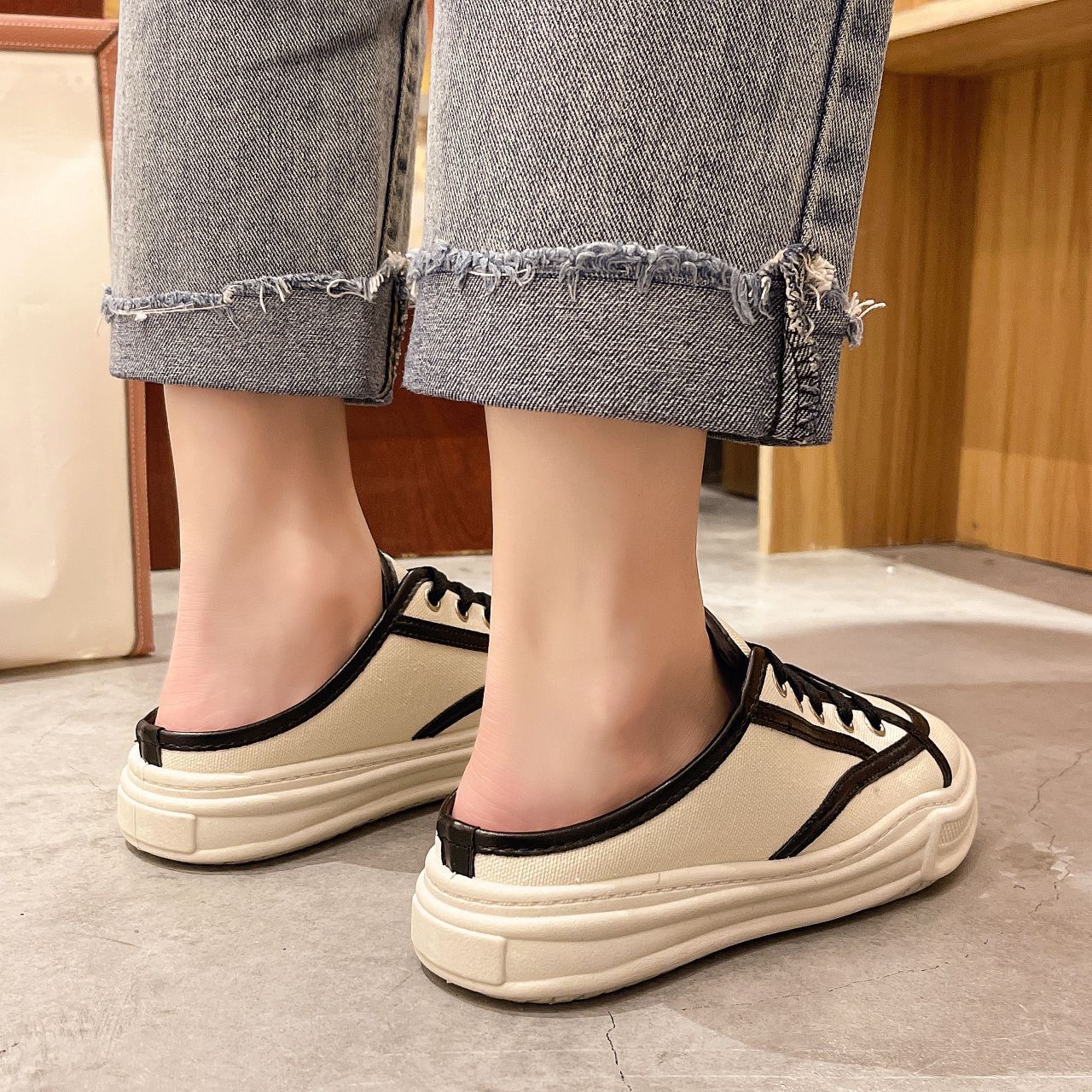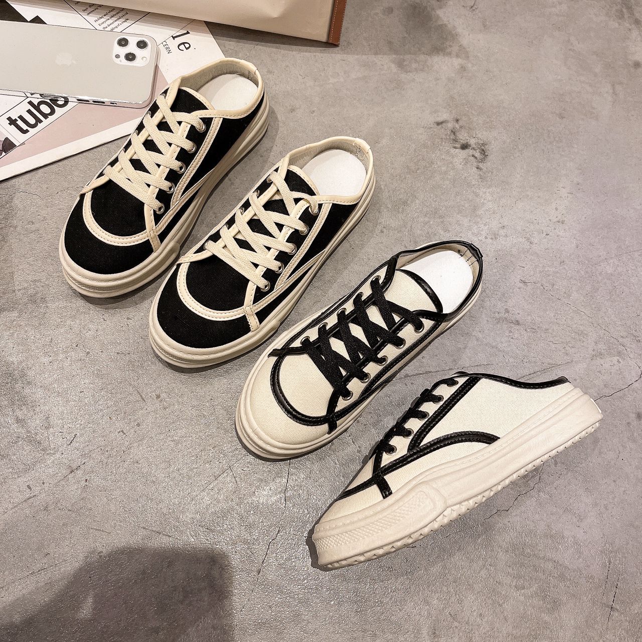 Sandal Wanita Import Sederhana Canvas Dengan Tali Sepatu