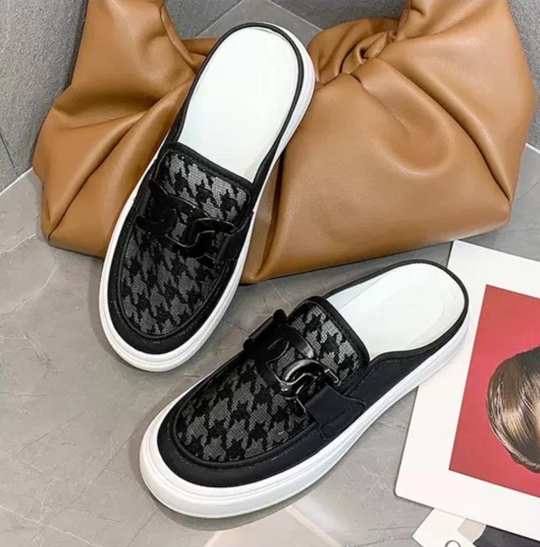 Women Leather Half Shoes Slip On